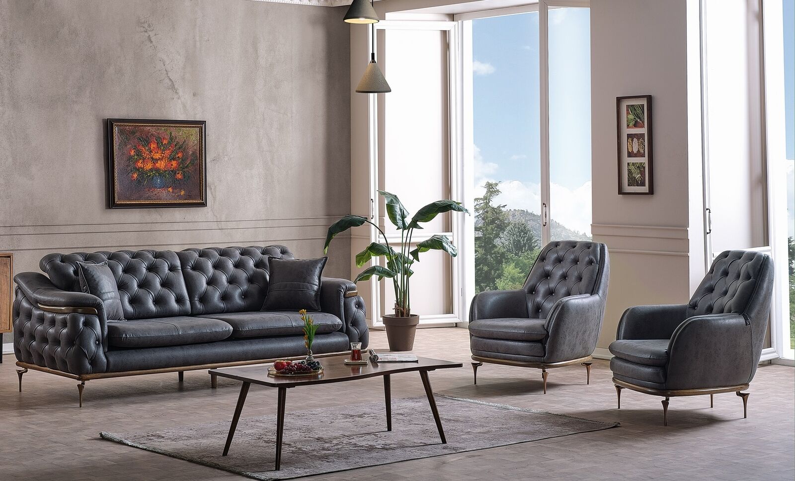 Questo set di soggiorno è ideale per momenti di relax con la famiglia o per accogliere gli ospiti in un ambiente sofisticato. La struttura robusta e la morbida imbottitura assicurano un comfort ottimale durante lunghe sessioni di colloqui o relax. Con un divano 3 posti e due poltrone, avrai la flessibilità di organizzare lo spazio in base alle tue esigenze, che sia per i momenti di svago serali o per i pomeriggi di lettura tranquilla. Aggiungi stile e funzionalità al tuo soggiorno con il Set di soggiorno Chesterfield elegante.