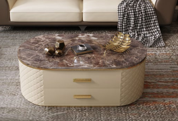 Tavolino in marmo sintetico design per salotto e divano da caffè.