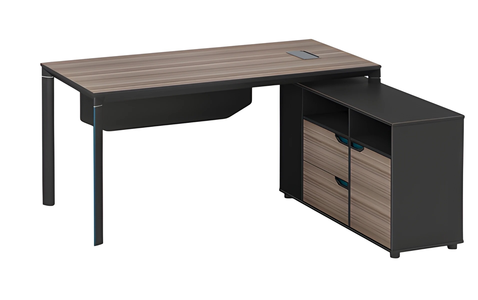 Scrivania angolare moderna in legno marrone e nero con spazio di archiviazione | xlmobili.it