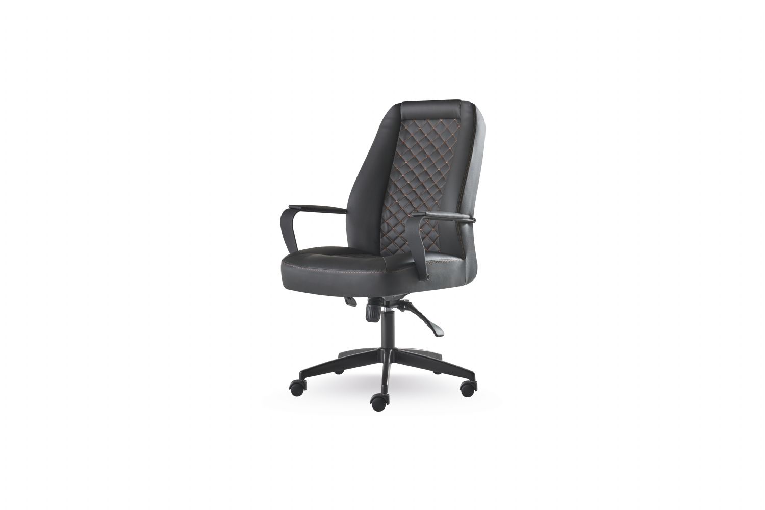 Sedia per ufficio nera, poltrona girevole moderna per studio con ruote, poltrona in pelle.