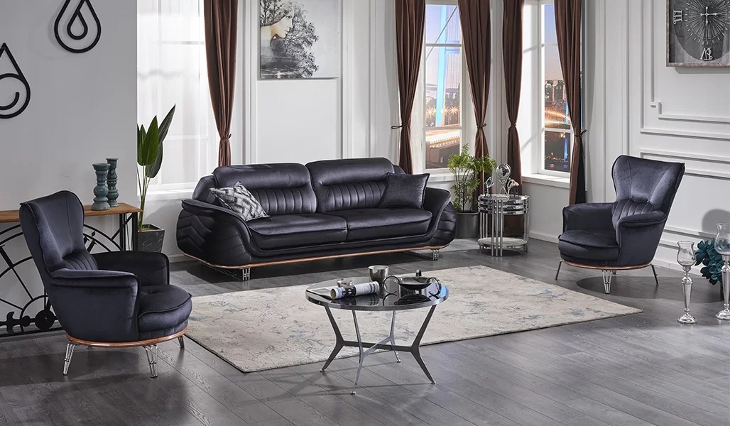Divano completo 3+1+1 posti soggiorno nero lussuoso set di divani