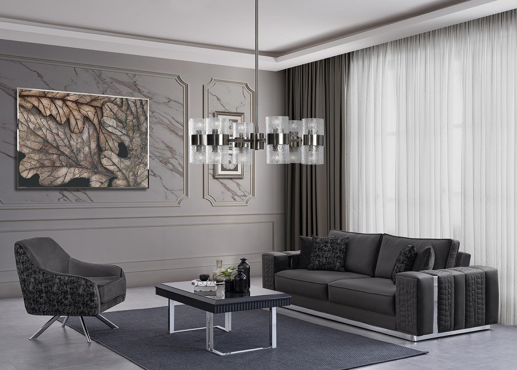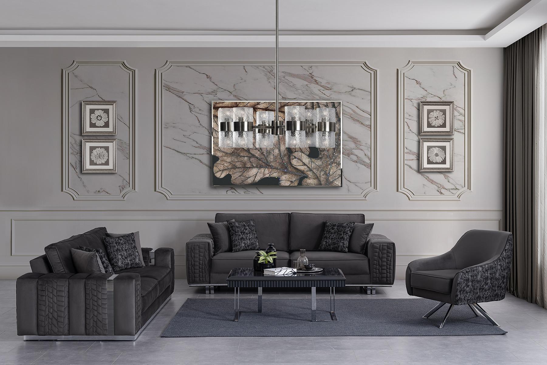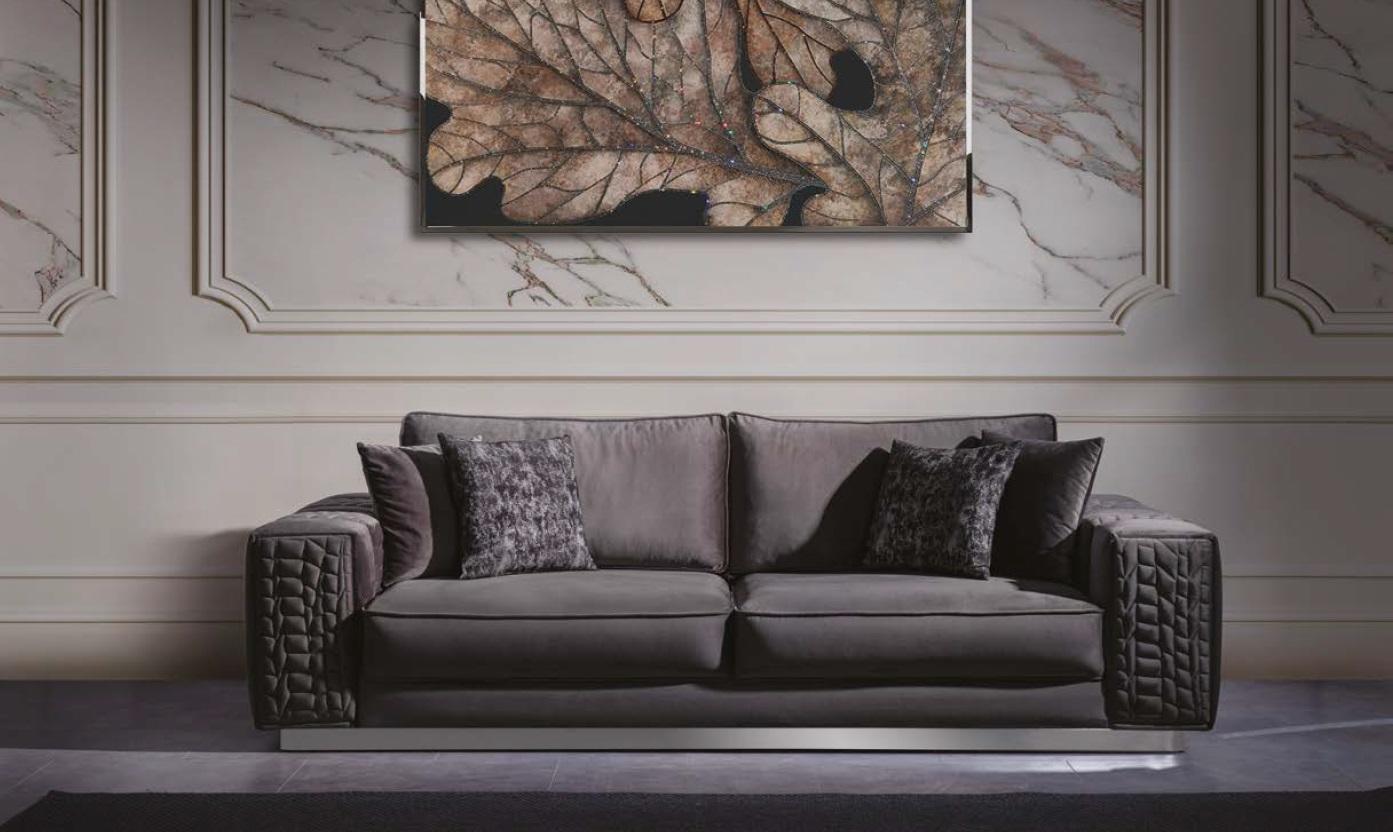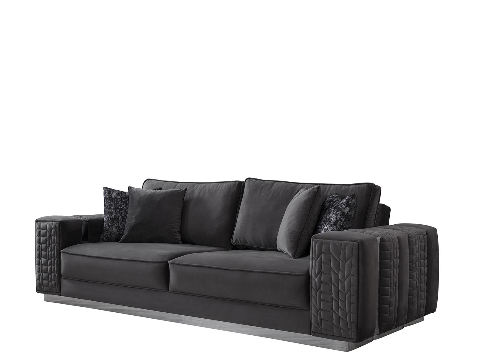 Divano nero imbottito in stile classico 3+1 posti, set di divani barocchi.