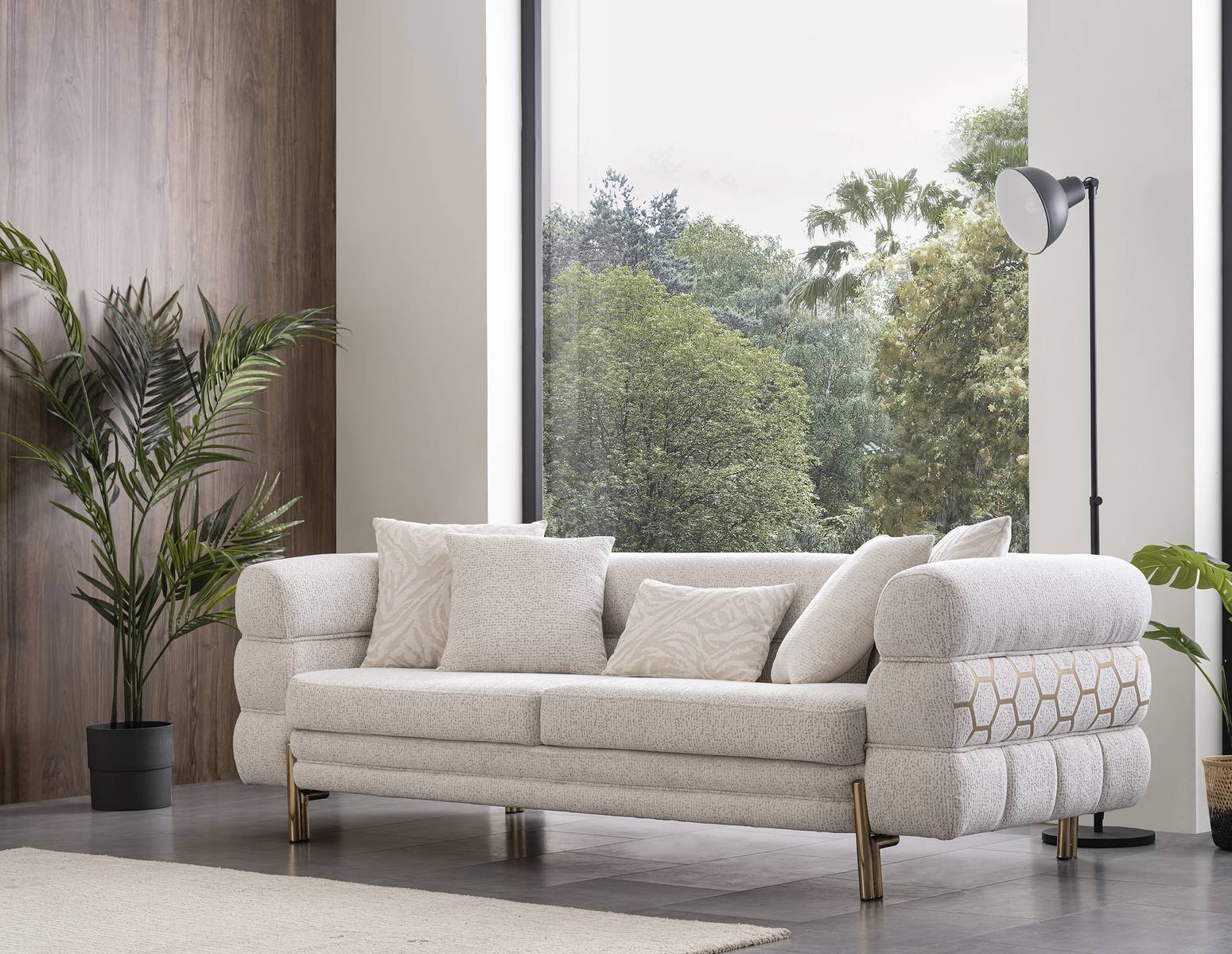 Inserisci Divano 3 posti + 3 posti + poltrona di lusso Sofà 3 pezzi nel tuo spazio living per creare un'atmosfera accogliente e sofisticata. Il colore come nella foto si adatta facilmente a qualsiasi stile di arredamento, mentre le dimensioni ben studiate assicurano una comoda seduta per lunghe serate di relax. Con altezza e profondità seduta ottimali e dettagli curati, questo set è ideale per momenti conviviali con famiglia e amici o per godersi momenti di tranquillità in solitudine. Rinnova il tuo soggiorno con questo set di lusso che unisce design, confort e funzionalità in un'unica soluzione impeccabile.
