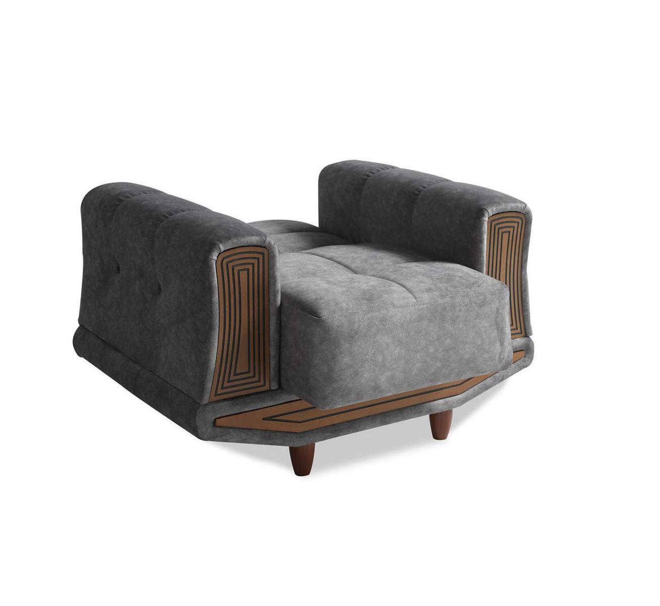 Con il divano 3 posti e le 2 poltrone, avrai spazio sufficiente per accogliere ospiti e familiari in un ambiente accogliente e raffinato. Le poltrone aggiuntive offrono ulteriori posti a sedere per momenti di relax o per creare una zona conversazione accogliente. Sia che tu stia guardando la TV, leggendo un libro o chiacchierando con amici, questo set di mobili completi soddisferà le tue esigenze di comfort e design. Perfetto per ambienti moderni e contemporanei, il materiale di legno e tessuto rende questo set una scelta versatile e di classe per il tuo spazio abitativo.