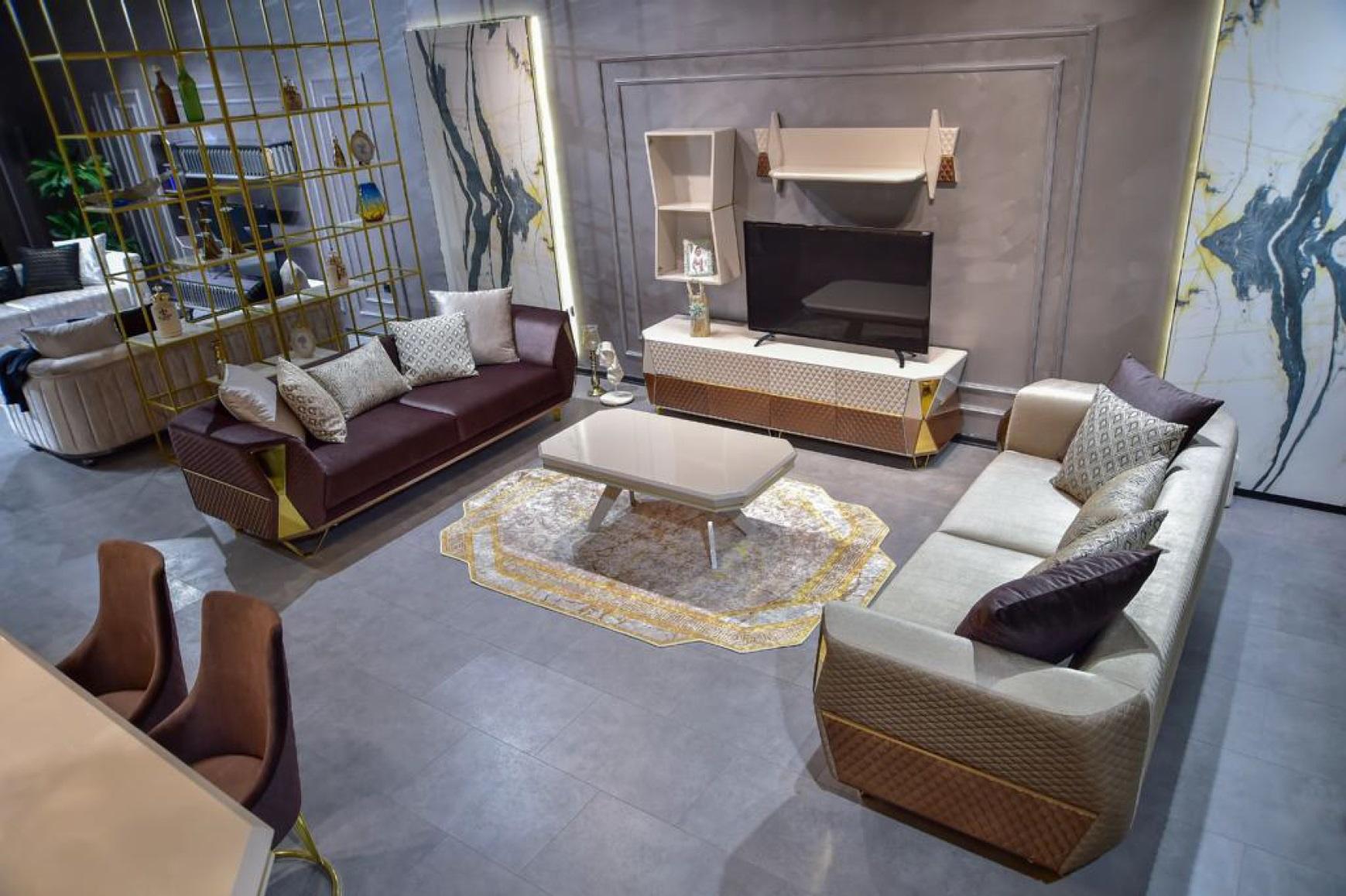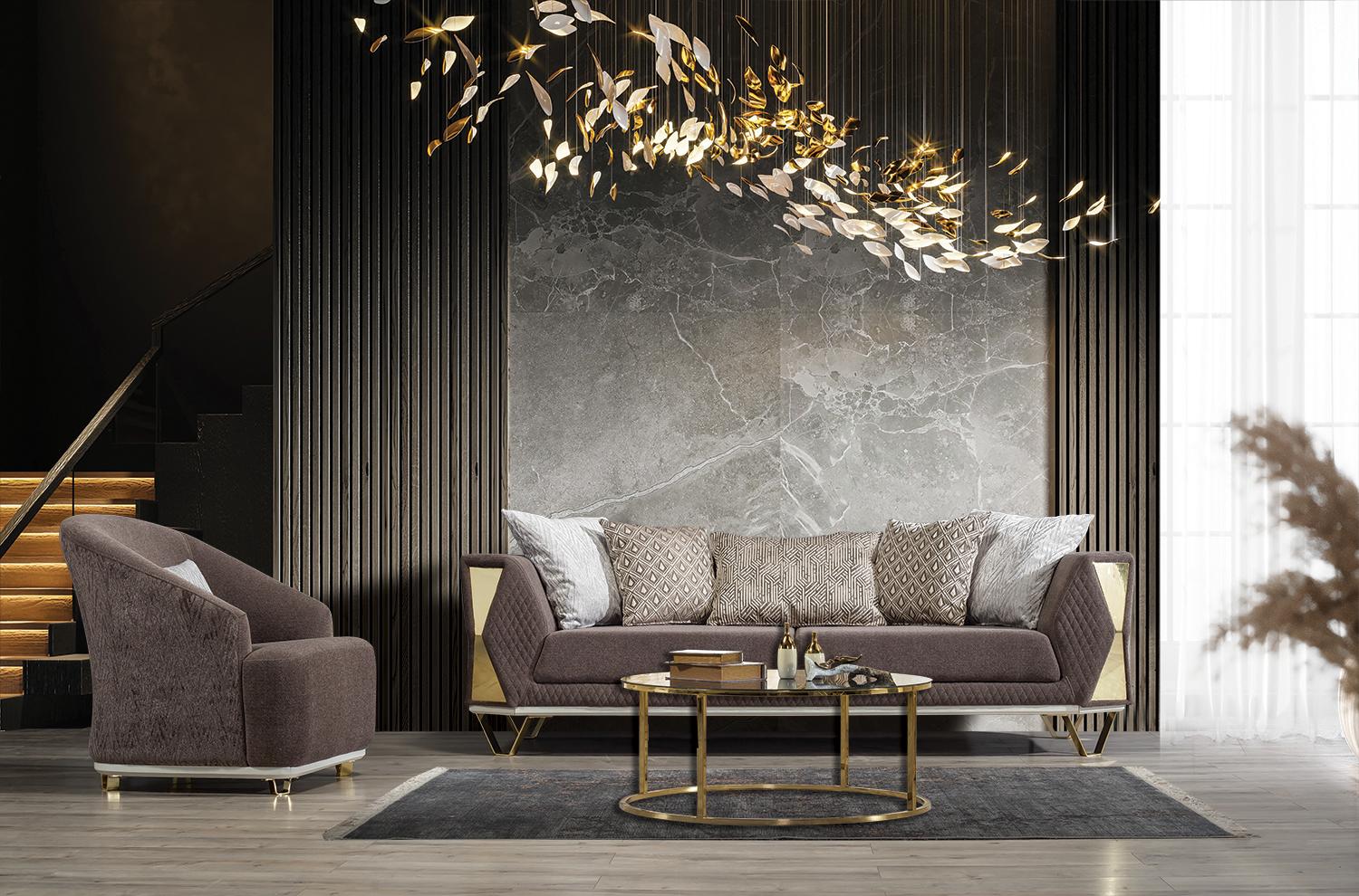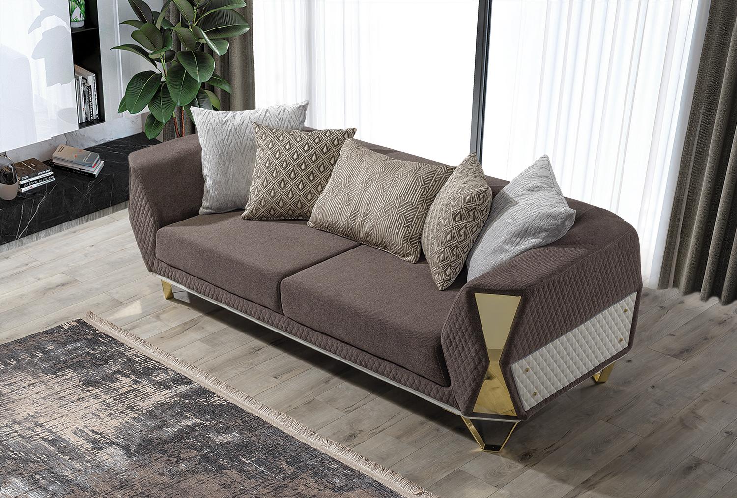 Garnitura divano 3+3+1 posti in tessuto moderno marrone nuovo