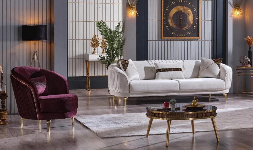Divano con piedini in acciaio inossidabile Tre posti + poltrona Moderno divano da soggiorno