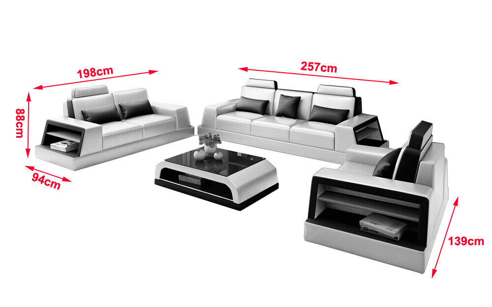 Sofà 3 posti + 1 posti Set Design Divani Divani imbottiti Relax Moderni è l'opzione ideale per chi cerca un design elegante e comfort impeccabile. Con le sue dimensioni di ca. 257 x 88 x 94 cm per il divano a 3 posti e ca. 139 x 88 x 94 cm per il divano a 1 posto, offre ampio spazio per rilassarsi. La struttura interna in legno massello assicura solidità e durabilità nel tempo, mentre il tessuto in fibra di pelle premium (70% pelle / 30% poliestere) garantisce un tocco di lusso e morbidezza.