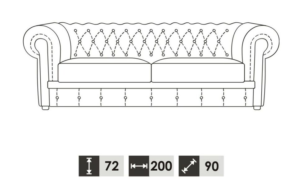 3 posti:   ca. 200 x 72 x 90 cm