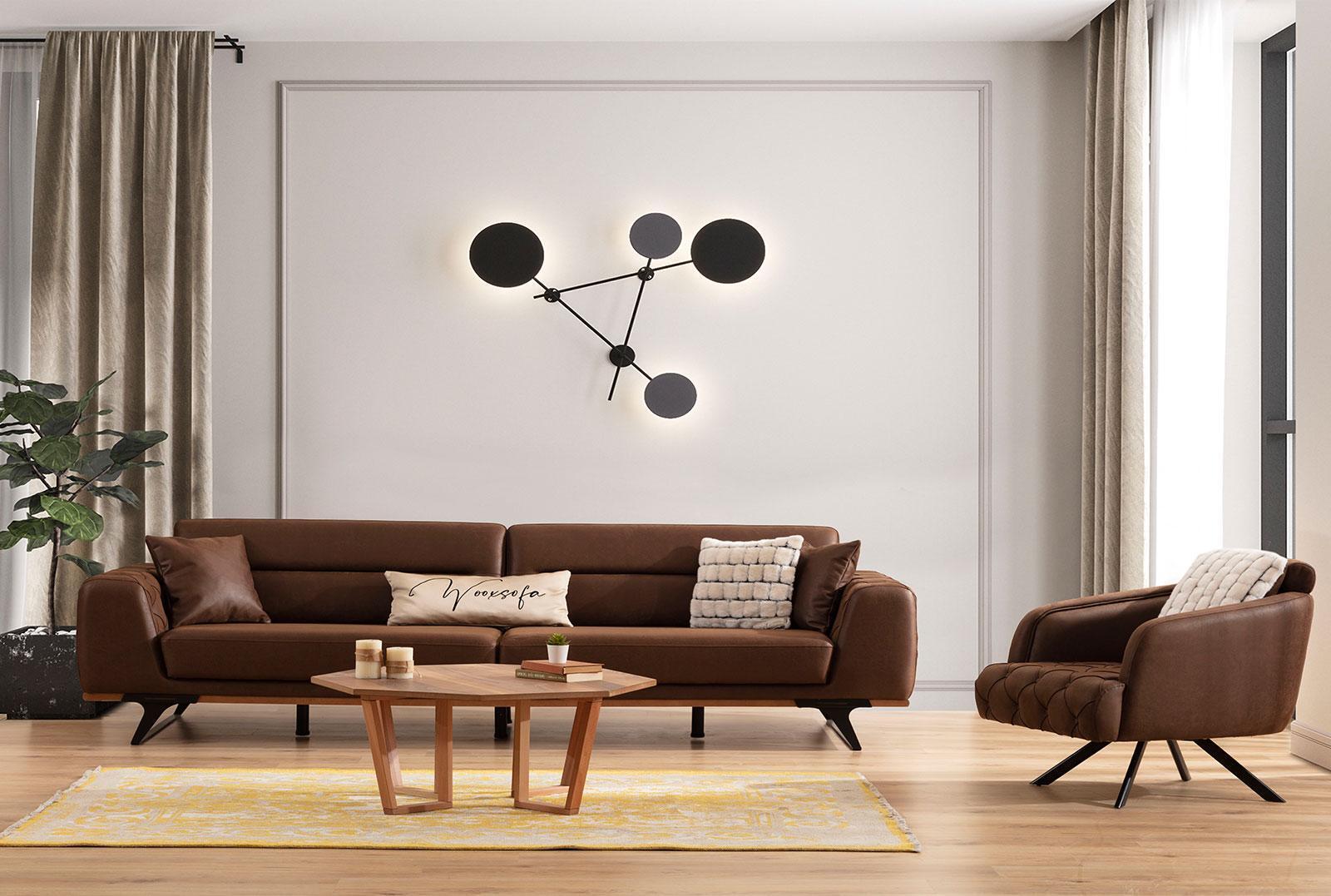 Nel tuo salotto, **il Divano completo quattro posti e poltrona Marrone** diventerà il punto focale dove accogliere amici e familiari per piacevoli serate o semplicemente per godersi momenti di relax. La combinazione di materiali di alta qualità e design ergonomico assicura il massimo comfort durante lunghe giornate di relax. Con il suo aspetto elegante e la sua versatilità, questo set di divani si adatta perfettamente a una varietà di stili d'arredamento, da quello classico a quello moderno, aggiungendo un tocco di classe in ogni ambiente domestico.