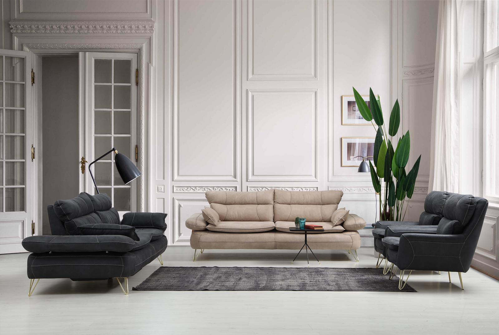 Sofà, divano, poltrona, divano con 3 posti + 3 posti + 1 posto + 1 posto.