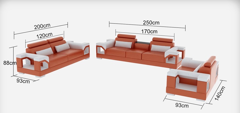 Lunghezza:       ca. 250/200/140 cm