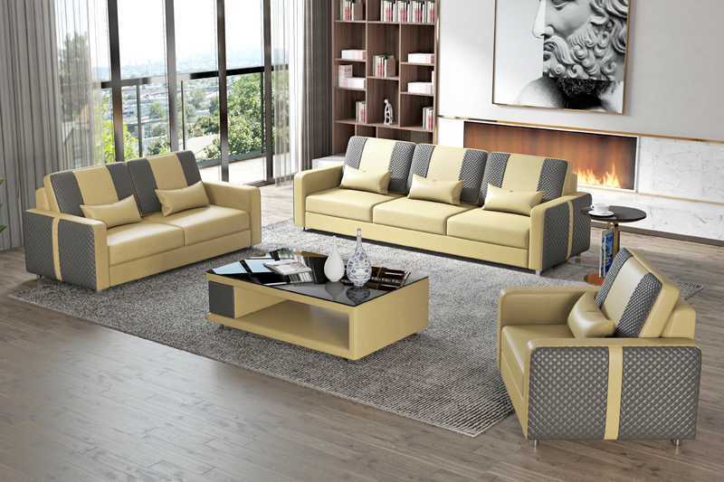 Divano completo Set di divani di lusso Grigio in similpelle 3-2-1 è un elegante e lussuoso set di divani che aggiungerà stile e comfort al tuo salotto. Con il design moderno e raffinato, questo set include un divano a 3 posti, un divano a 2 posti e una poltrona, tutti realizzati con materiali di alta qualità per garantire resistenza e durata nel tempo. Le dimensioni generose dei divani offrono spazio sufficiente per rilassarsi e intrattenere gli ospiti, mentre la scelta di colore libera ti permette di personalizzare l'arredamento secondo i tuoi gusti. Opzionalmente, puoi selezionare diversi gruppi di rivestimenti, tra cui pelle sintetica premium, tessuto in fibra di pelle premium, pelle vera premium e tessuto premium, per adattare il set alle tue preferenze.