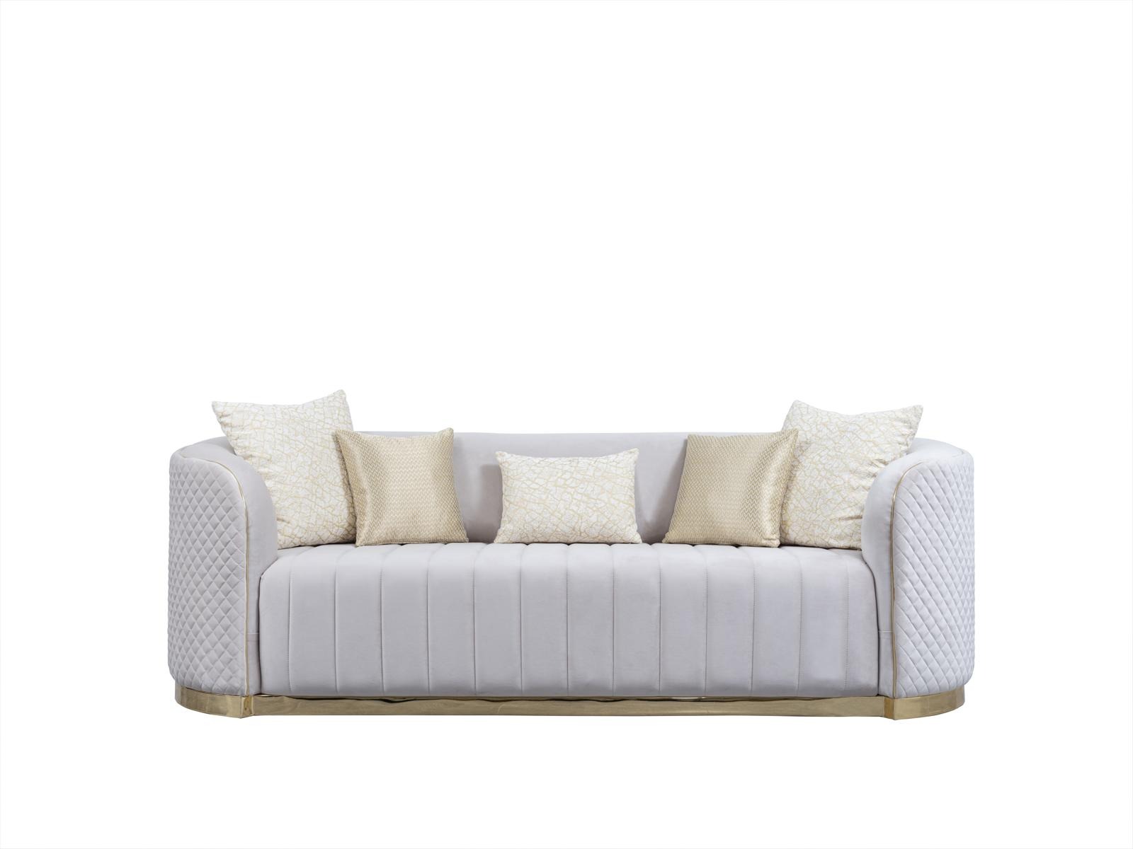 Nel colore come da immagine, questi divani si adattano facilmente a qualsiasi arredamento, aggiungendo un tocco di lusso e confort alla vostra casa. Realizzati in legno con tessuto in velluto, i divani offrono una struttura interna in legno massello che garantisce solidità e resistenza nel tempo. Con dimensioni ergonomiche e altezza seduta confortevole, questo set di divani è ideale per godersi piacevoli momenti di relax, incontri con amici o serate in famiglia. Aggiungete un tocco di eleganza al vostro spazio abitativo con il divano di lusso, completando l'arredamento con stile e funzionalità.