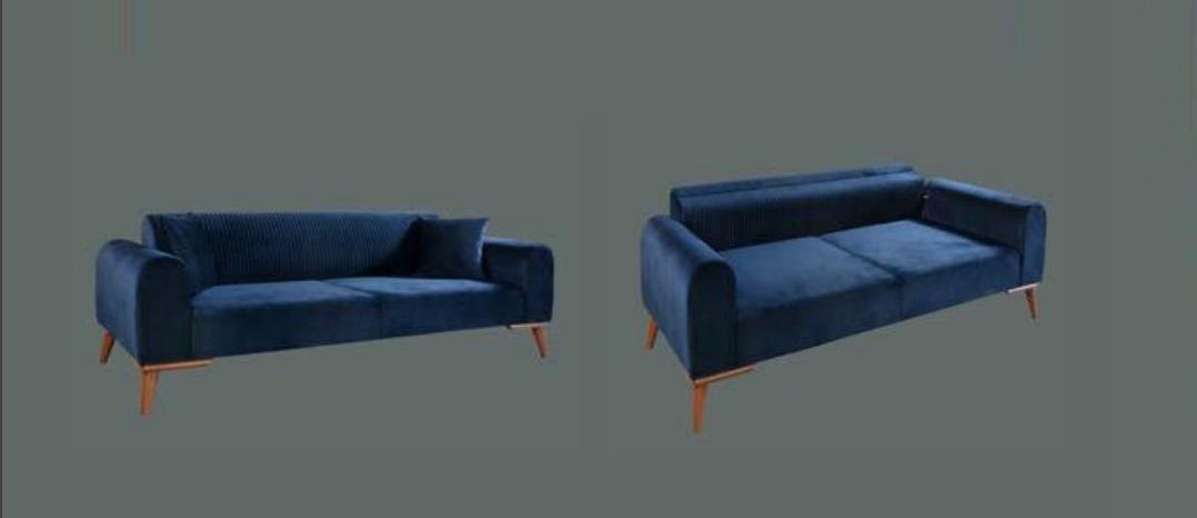 Il set di divani 3+3+1 posti Sofa poltrona Royal Blue Couch Velluto 3 pezzi è la soluzione perfetta per arredare con stile e comfort il tuo spazio abitativo. Con due divani a tre posti e una poltrona coordinata, questo set offre un'elegante combinazione di design contemporaneo e funzionalità. I divani, con dimensioni di circa 222 x 92 x 77 cm ciascuno, offrono ampio spazio per sedersi e rilassarsi, con un'altezza seduta di circa 44 cm per il massimo comfort. Realizzati con materiale di alta qualità, tessuto con struttura in legno, garantiscono resistenza e durabilità nel tempo.