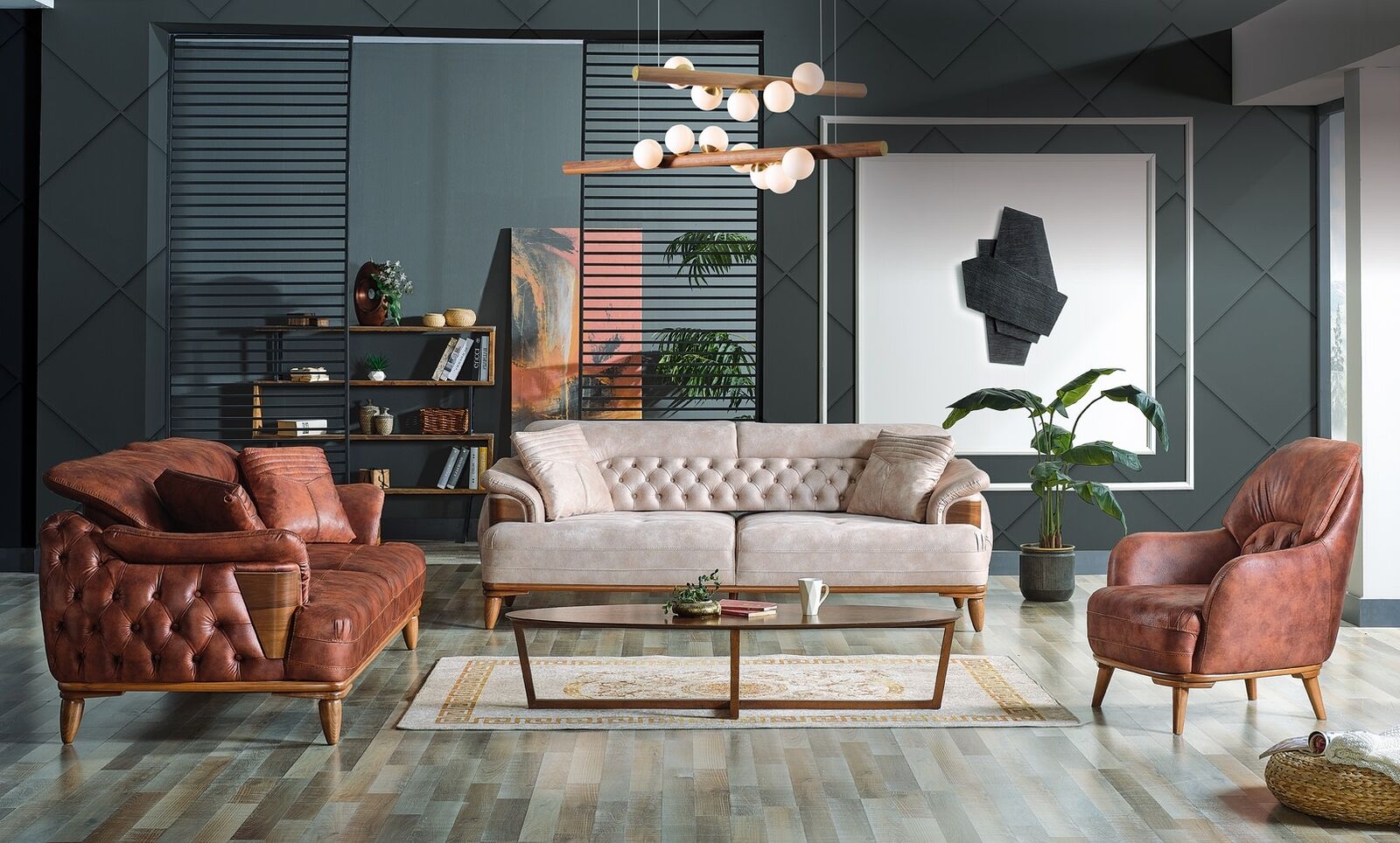 Questo set di divani classici è ideale per creare un ambiente accogliente e raffinato in casa tua. Il design Chesterfield classico si abbina perfettamente a diversi stili di arredamento, mentre il colore neutro come mostrato lo rende versatile e facile da abbinare. Realizzato in legno e tessuto di qualità, questo set di divani è sia elegante che resistente. Sia che tu stia guardando un film in famiglia o ospitando amici per una serata informale, il Set di divani classici 3+3+1 posti modello Chesterfield sarà il centro della tua zona living.