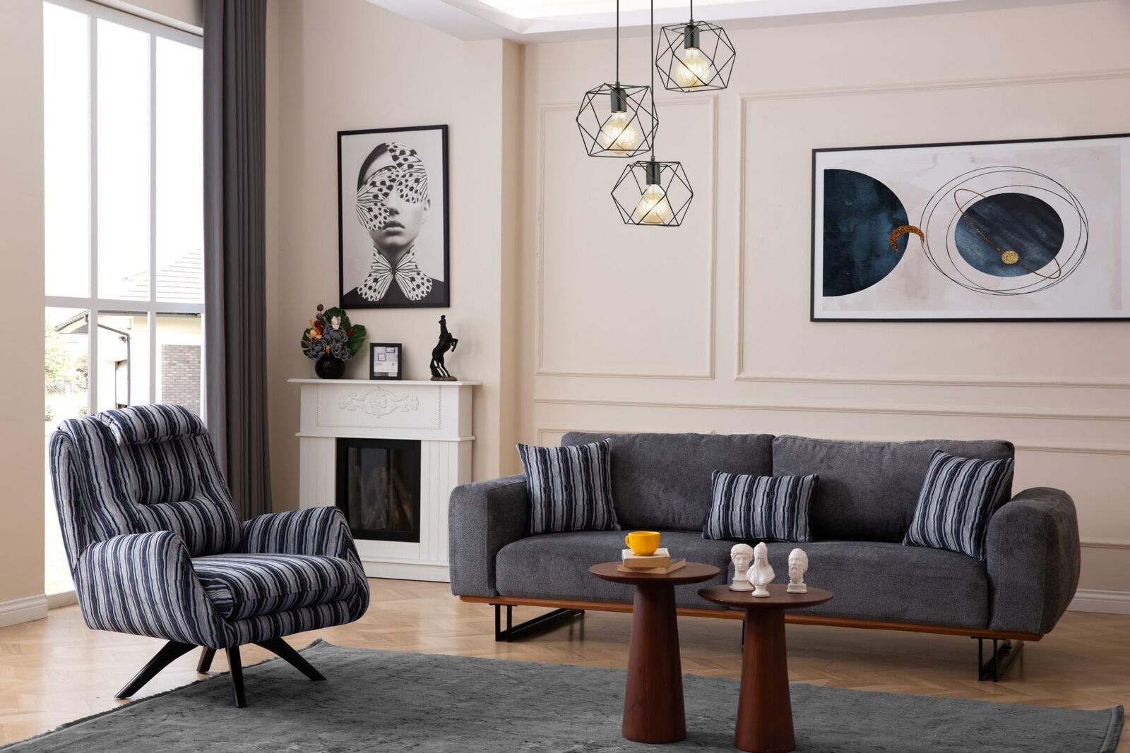 Set da soggiorno moderno, 2 pezzi, set di divani di lusso, 3 posti + 1 posti, divani, mobili