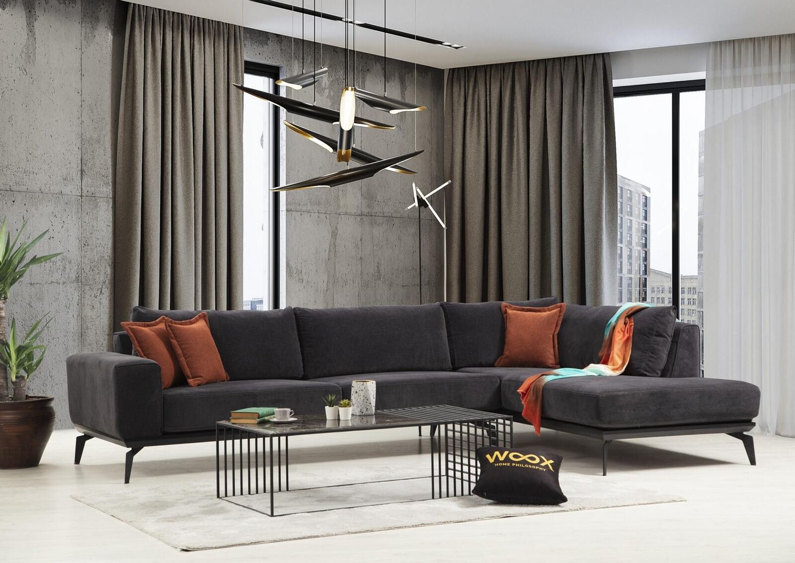 Il Divano d'angolo grigio imbottito è il complemento perfetto per il tuo soggiorno. Con le sue generose dimensioni, offre spazio più che sufficiente per rilassarsi in totale comfort. Realizzato con materiali di alta qualità, garantisce resistenza e durabilità nel tempo. Il design elegante e moderno si adatta perfettamente a qualsiasi tipo di arredamento, aggiungendo un tocco di stile alla tua casa.
