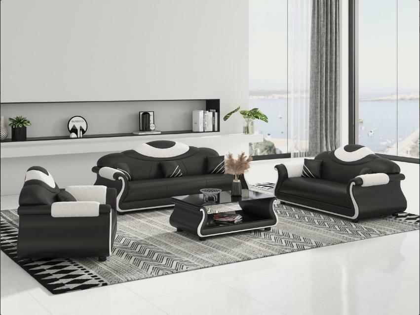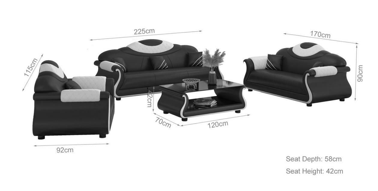 Sofà set 3+2+1 posti Sedili Divano Divano 3 pezzi Composizione per soggiorno Divano Divano Poltrona: Questo elegante set di divani è il complemento perfetto per il tuo soggiorno, offrendo comfort e stile imbattibili. I sedili sono realizzati con tessuto in fibra di pelle premium (70% pelle / 30% poliestere), garantendo una sensazione di lusso e durata nel tempo. Con le sue dimensioni generose, il divano a 3 posti, il divano a 2 posti e la poltrona offrono ampio spazio per sedersi e rilassarsi. Il design italiano e la struttura interna in legno massello assicurano resistenza e robustezza, mentre la scelta del colore libero ti consente di adattare facilmente questo set al tuo arredamento esistente.