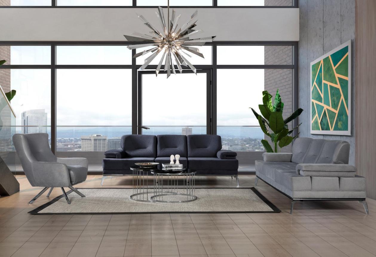 Set completo di divani in tessuto, divani imbottiti moderni a tre posti e poltrona.