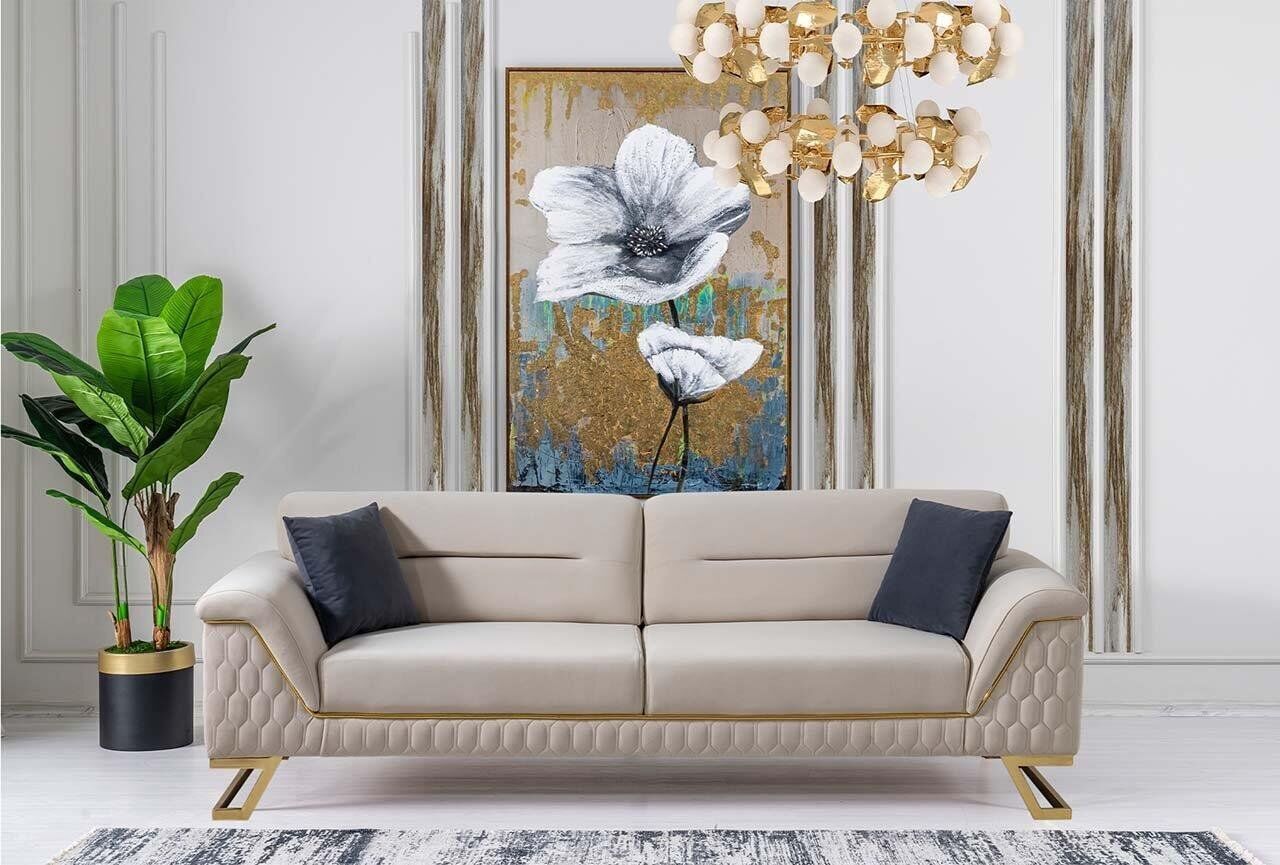 Con le dimensioni generose del divano e della poltrona, potrai accogliere comodamente familiari e amici per serate di relax e socializzazione. La combinazione di colori neutri come in foto si adatta facilmente a qualsiasi arredamento, mentre la robusta struttura assicura una stabilità e resistenza superiori. Goditi momenti di puro relax e stile con questo ensemble da soggiorno dal design raffinato e lussuoso che trasformerà il tuo spazio in un'oasi di comfort e raffinatezza.